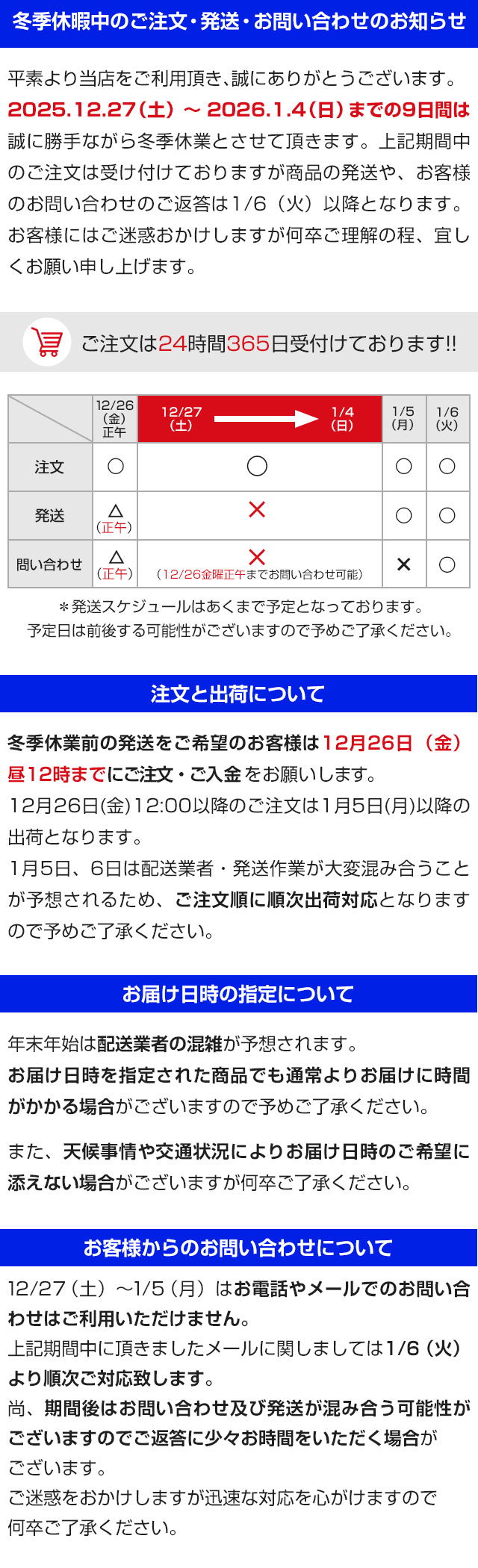【年末年始の配送について】